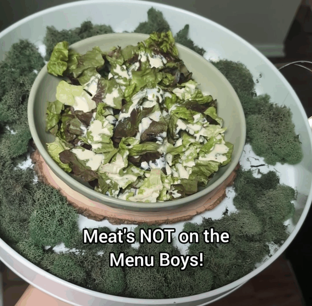 In this scene, the salad they are served in Rivendell looks very plain with an abundance of leafy lettuce, so I served a very plain salad with just lettuce and dressing. You can choose to make it more complex and delicious, but simple is easy to execute when you’re serving a lot of food.