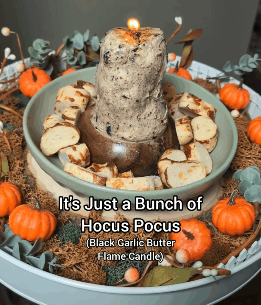 It’s the Black Flame Candle, so I decided to use black garlic in the butter candle. Don’t be scared by the look or color of this garlic. All it is is fermented garlic. It has a sweet flavor to it that is incredible! I usually source my black garlic from my local Asian market. If you don’t want to use black garlic, or you can’t find it, feel free to use roasted garlic instead. I promise your guests’ jaws will still drop when they see you bring out a butter candle!