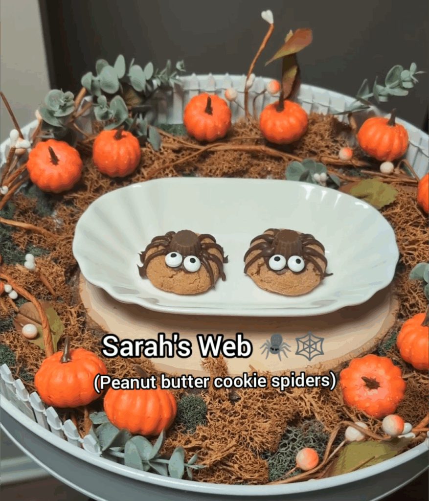 Here is the recipe for the Peanut Butter Spider Cookies. I used this piping kit to pipe the legs of the spiders. These are the candy eyes I used.