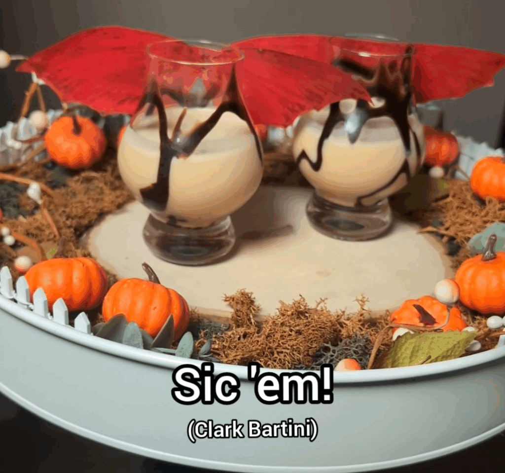 This scene features Clark Bars. When I tried to buy them for this movie night, I discovered they were very hard to purchase in my area!!!!! These are candy bars that have a crispy peanut butter/spun taffy core and are coated in milk chocolate. I decided to make a martini version of this chocolate bar with notes of peanut butter, caramel, and chocolate.