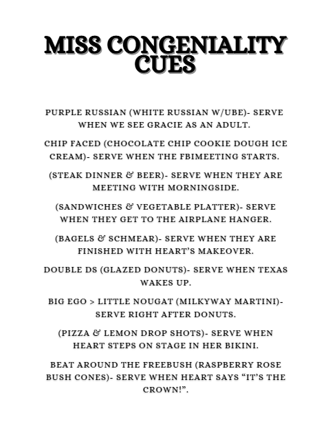 This is a simple one to serve. The movie features a close-up of the “pint” she ordered at the bar, and it’s Ben & Jerry’s Chocolate Chip Cookie Dough ice cream. I recommend removing the seal from the ice cream before you start the movie. This allows you to serve the pint quickly.