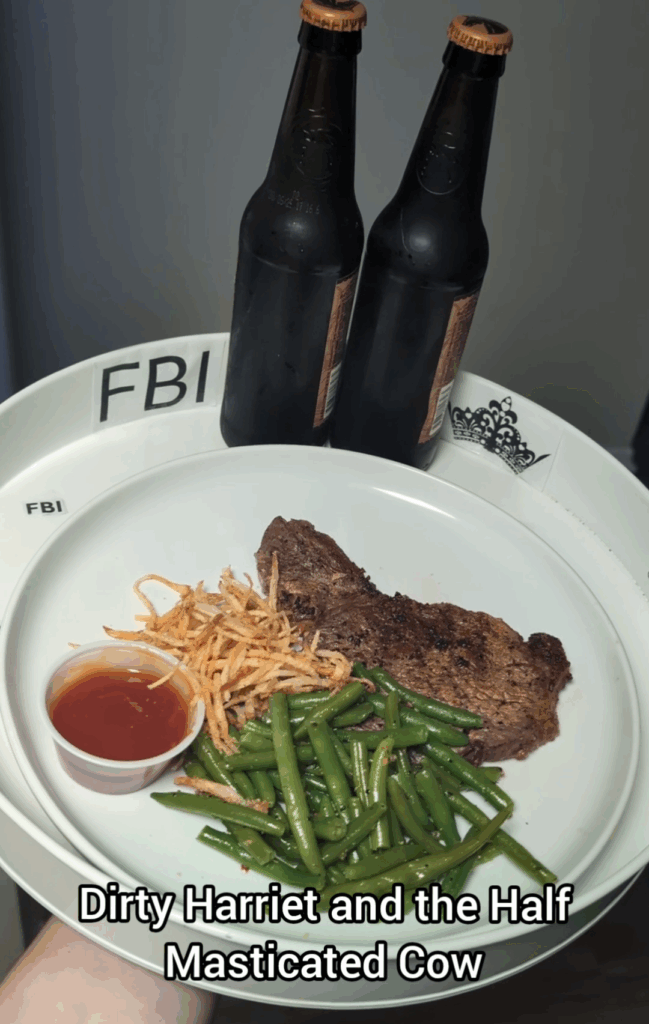 One of the funniest scenes from the movie! Heart is meeting with Victor Melling, her beauty pageant coach, for the first time. He is shocked by her lack of decorum and says he is stuck with Dirty Harriet. He also mentions the Half Masticated Cow rolling around in her wide open trap. Hence the name of the dish!