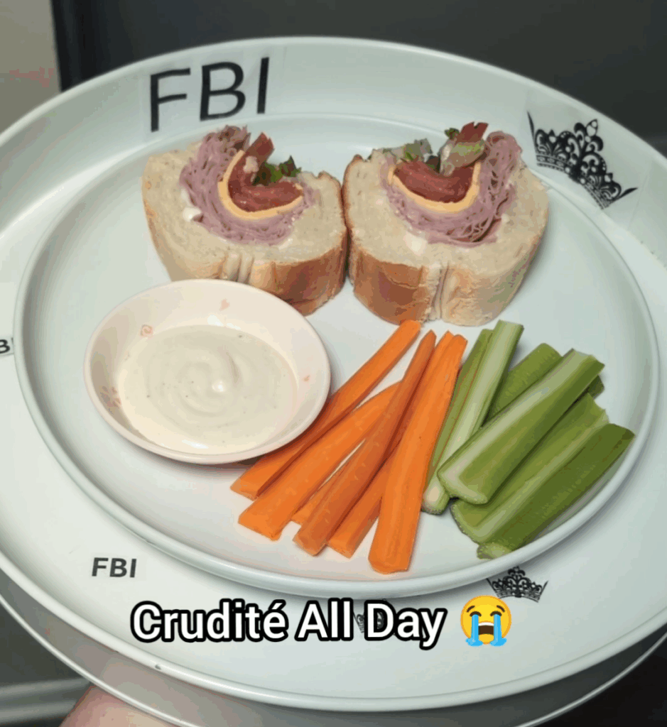 I served a thin slice of a ham sub from one of our favorite sub shops, but you can also make a sandwich for this scene. I recommend covering the sandwich with parchment paper until you are ready to serve so the bread doesn’t get soggy.