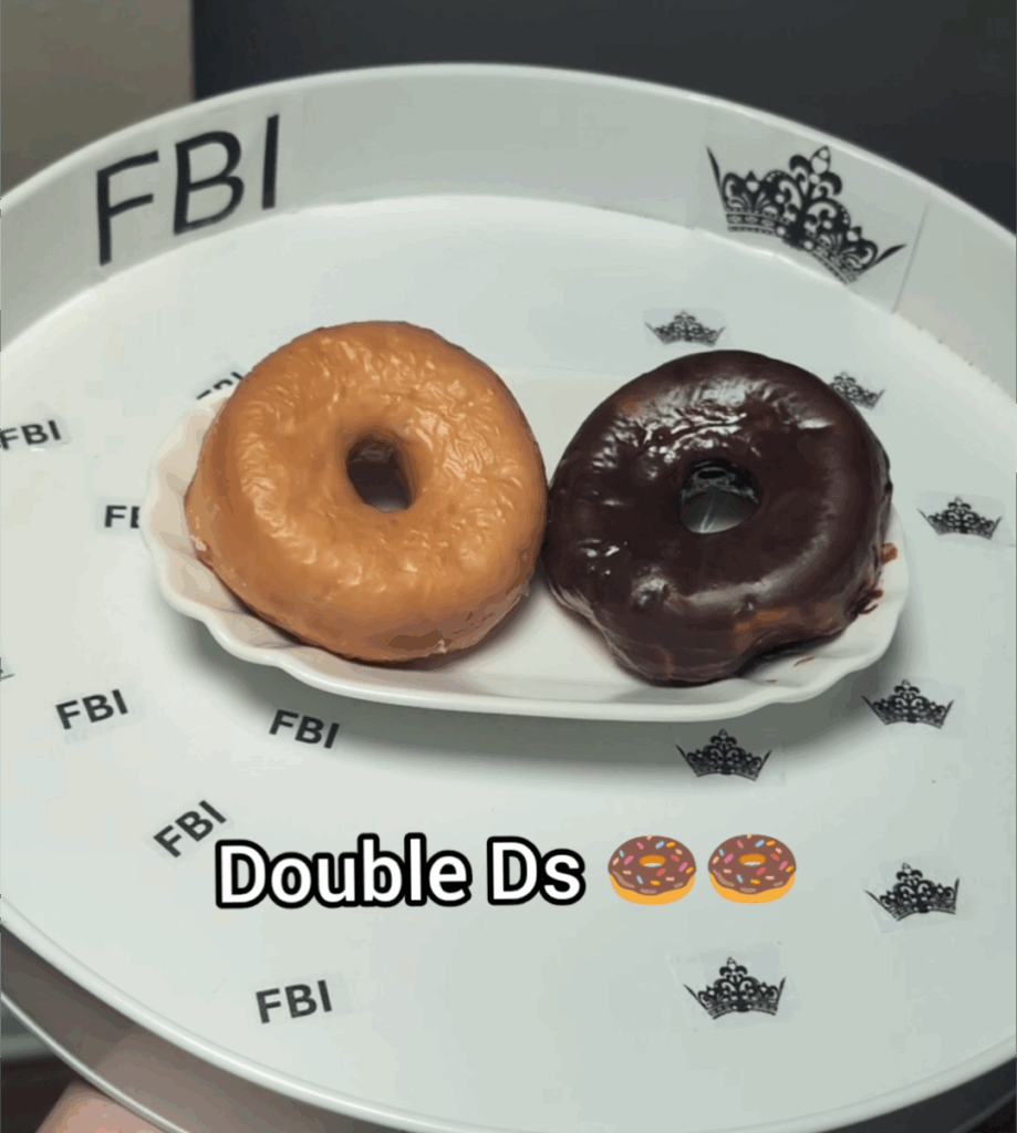 Double donuts! Poor Heart just wants some carbs! I bought a variety box of donuts that had chocolate glazed and regular glazed donuts to match the ones Heart tries to smuggle. I recommend having these set up on the serving dish before the movie starts, so you can quickly serve them right before the scene.