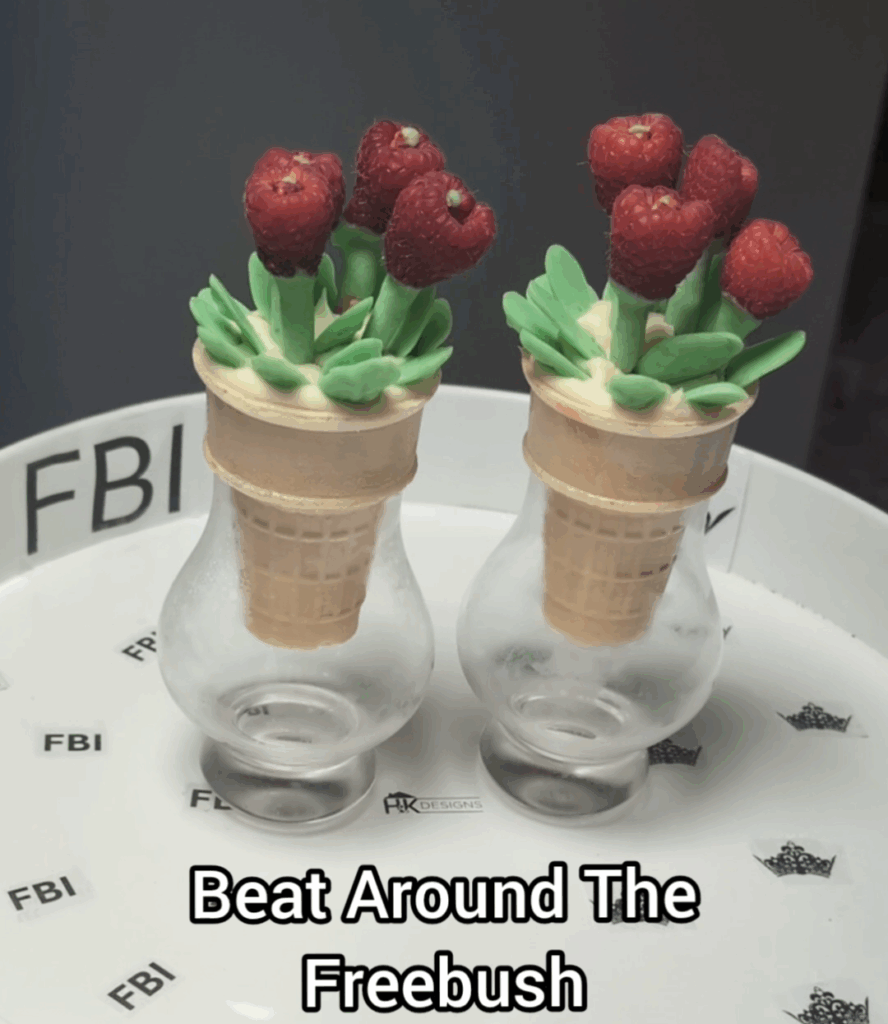 I decided to represent this scene by replicating the rose bouquet/ lethal weapon used to derail Heart’s attempt to take the crown. The result was raspberry pretzel roses and chocolate leaves in an ice cream cone filled with sweet cream cheese.