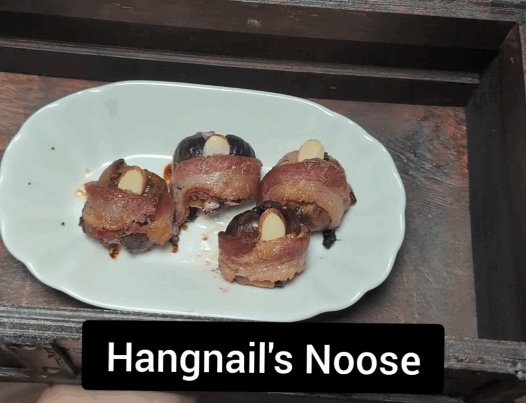 I served bacon-wrapped stuffed dates with an almond slice to look like a toenail. To make these “toes”, you’ll need the following: